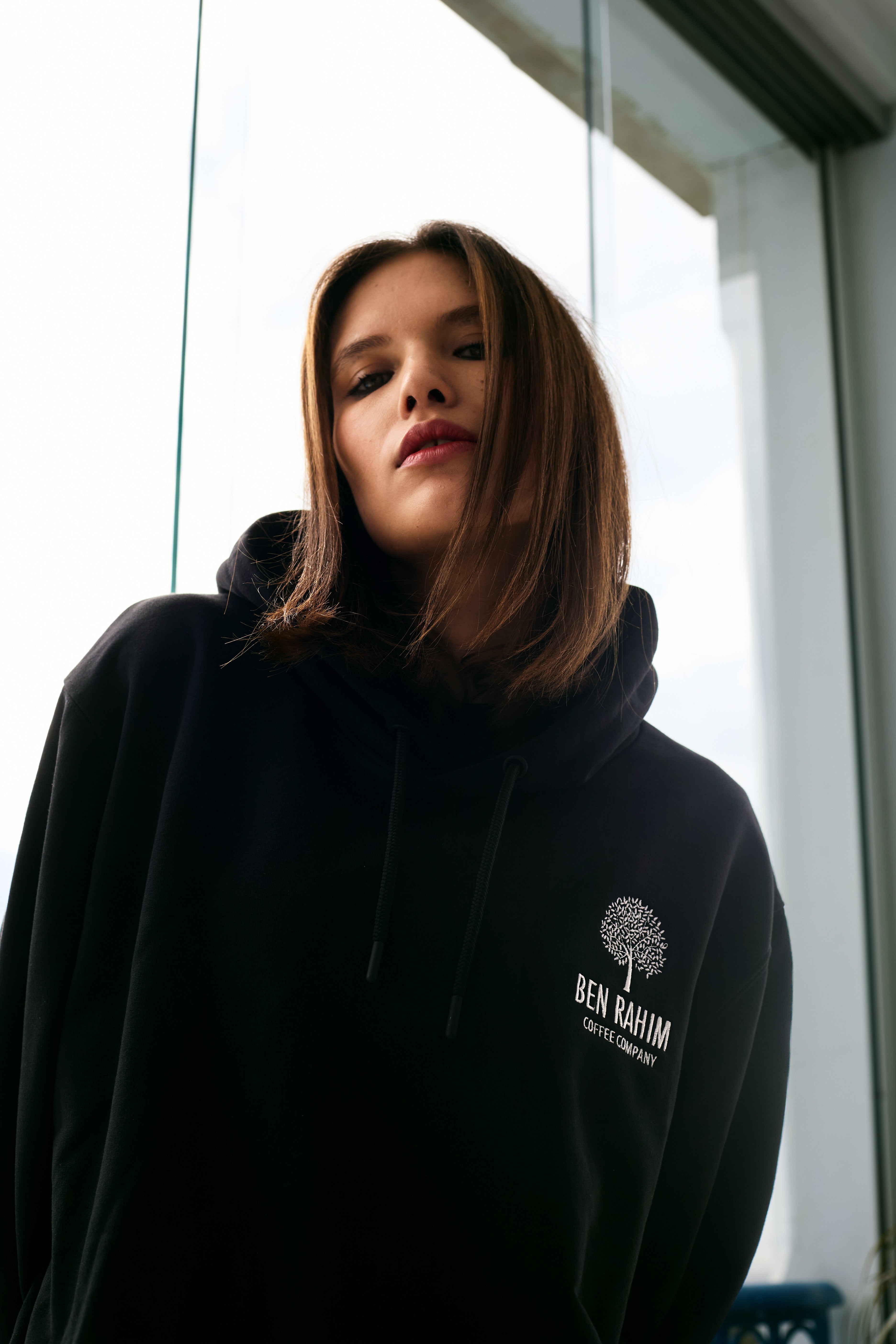Ben Rahim Black Sweats à capuche de haute qualité avec notre logo d'arbre blanc bien connu.